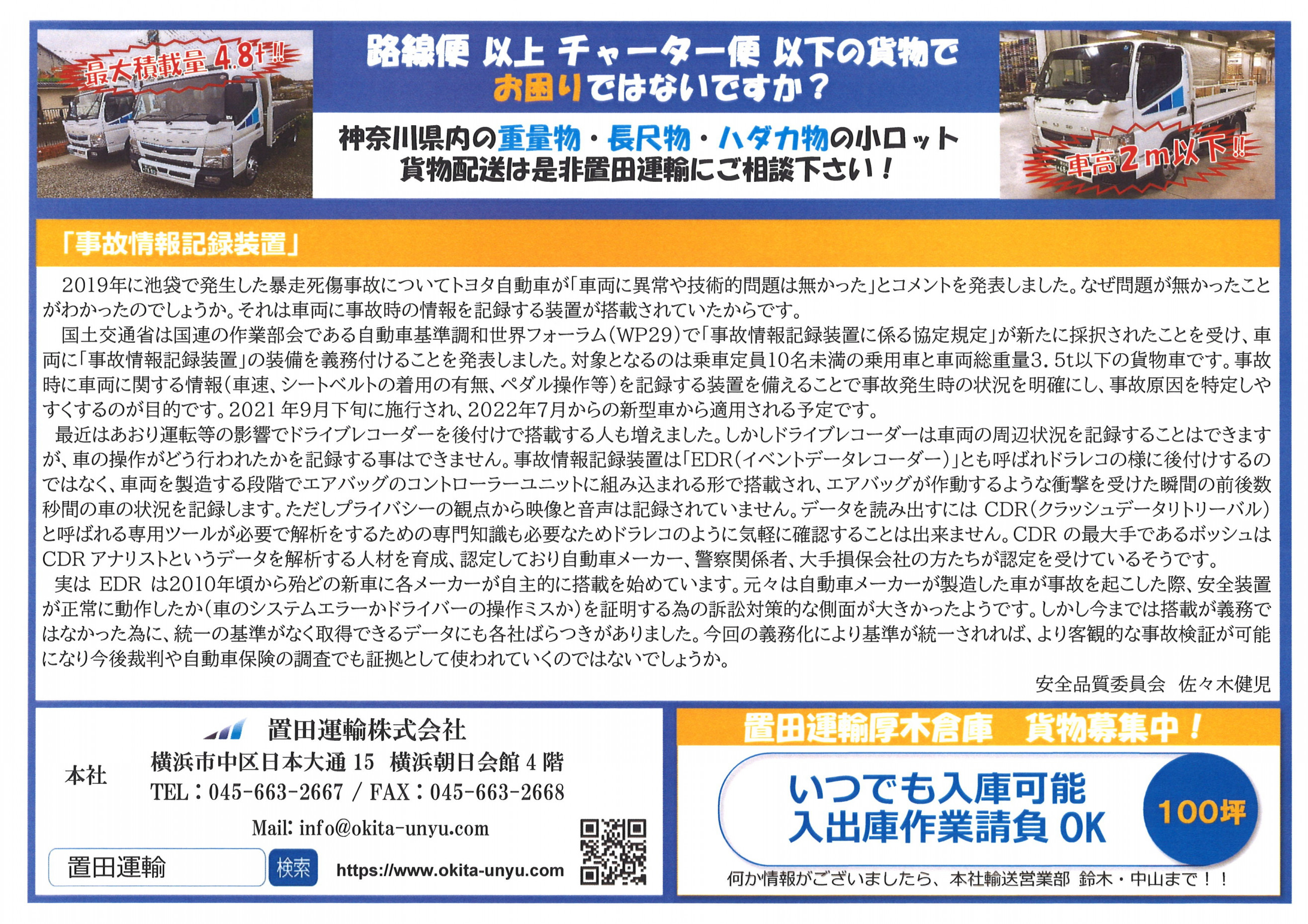 それでは置田運輸の広報誌「OKITAVARIETY ANGLE 8月号」です。