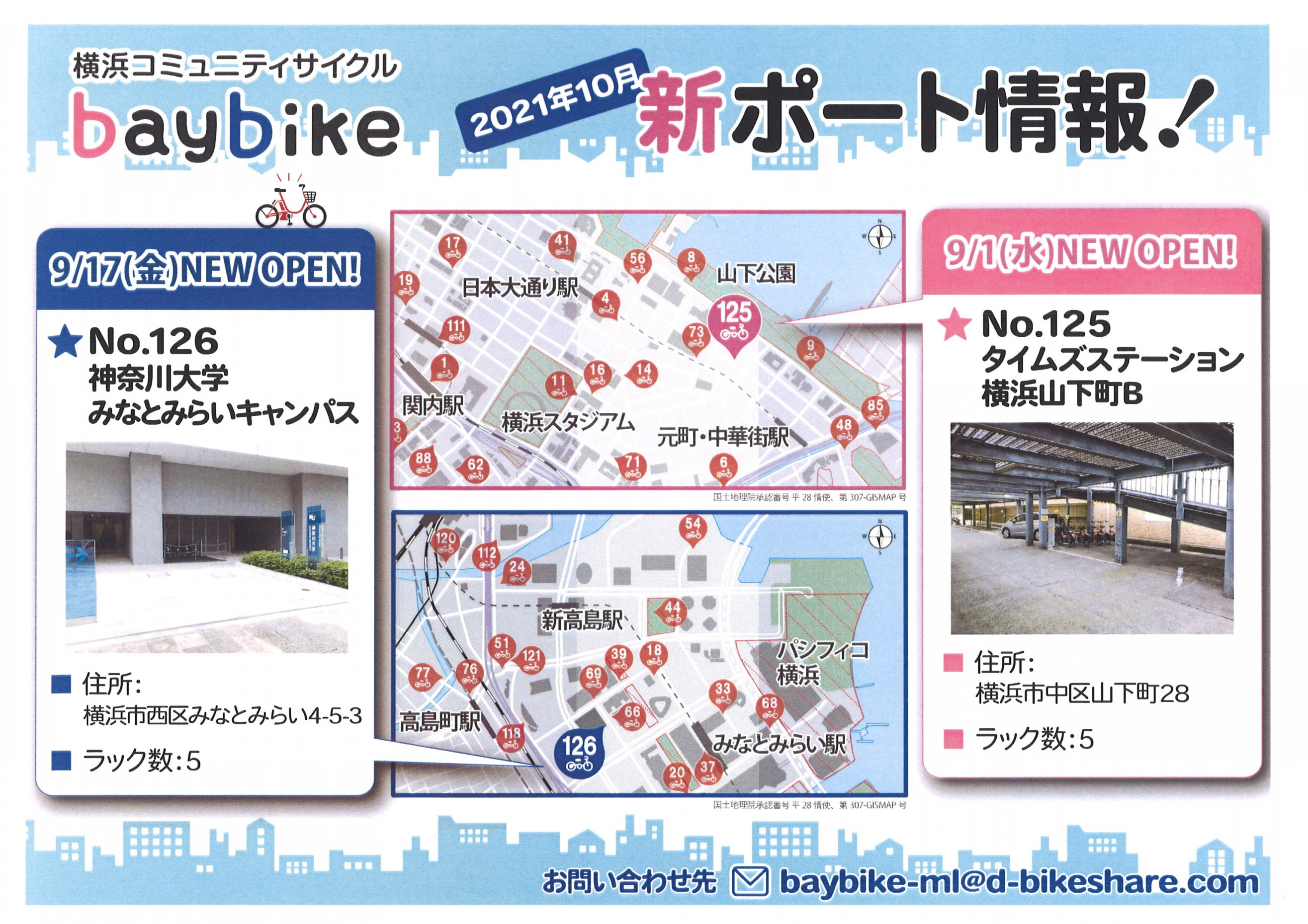 置田運輸が運営しているシェアサイクル事業「横浜コミュニティサイクルbaybike」の新ポート情報です。