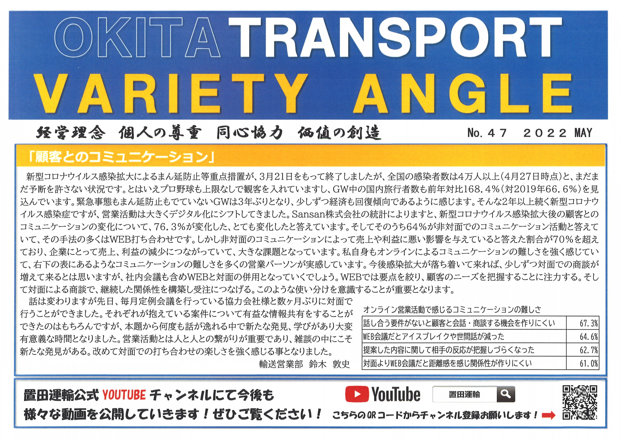 そんな中、置田運輸の広報誌「OKITA VARIETY ANGLE 5月号」です。