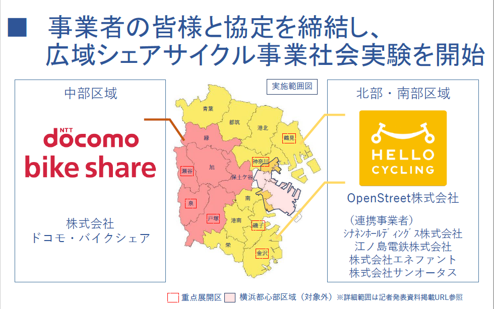 6月10日横浜市長の定例記者会見で、横浜市広域シェアリング事業の社会実験が開始される事が発表されました。我々ドコモ・バイクシェアチームでは中部区域エリアを受託する事となりました。baybike事業を展開している西区・中区との連携を図り、利用者の更なる利便性向上に努めてまいります。引続きのご愛顧をお願い致します。またポート開拓のご協力も重ねてお願い致します。