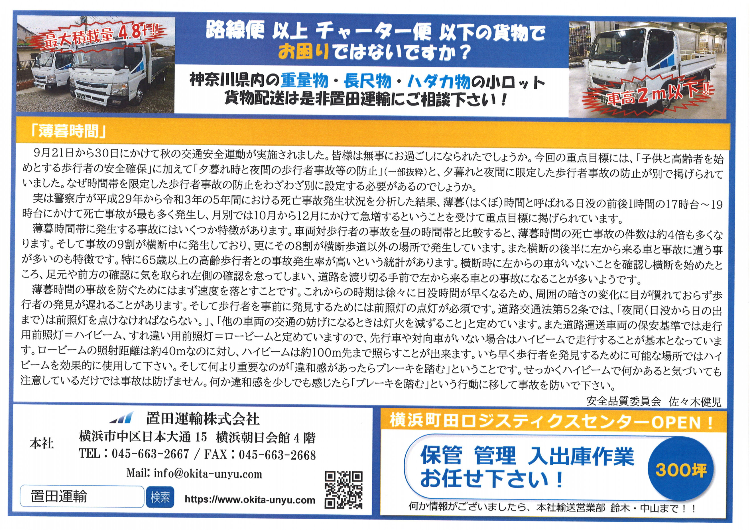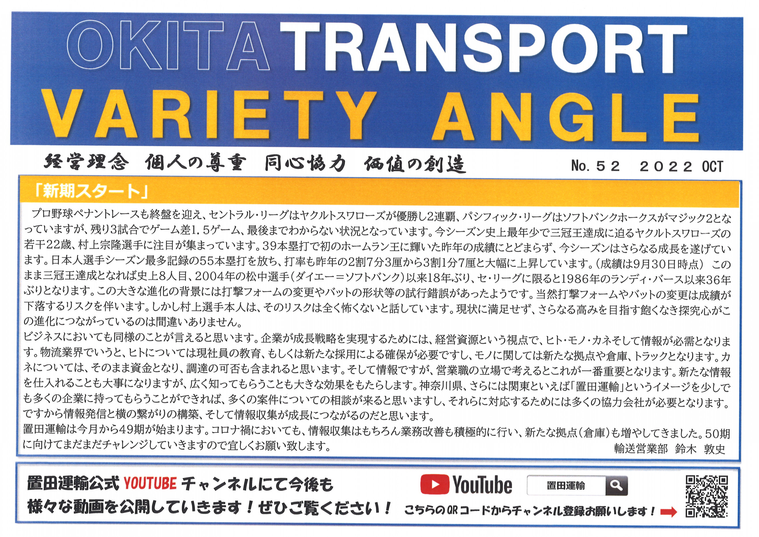 そんな新たな気分で置田運輸の広報誌「OKITA VARIETY ANGLE 10月号」です。