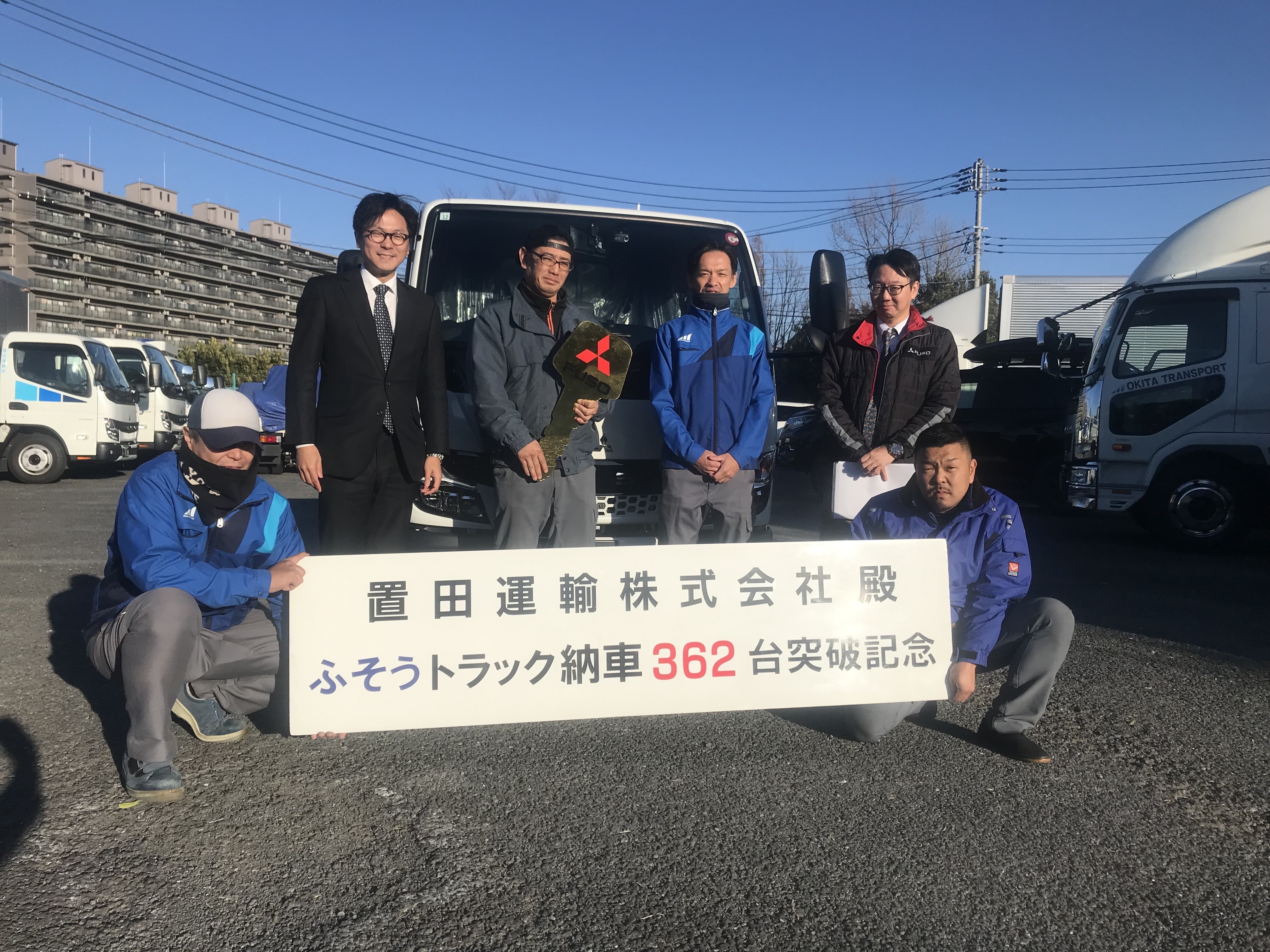 横浜営業所にて納車式を執り行いました。 三菱ふそうキャンター2t平ボディ2t積載車です。 ドライブレコーダー、デジタルタコグラフをはじめ 車線逸脱警報装置、衝突被害軽減ブレーキ、左折時巻き込み防止センサーなど 安全装置も、充実しております。