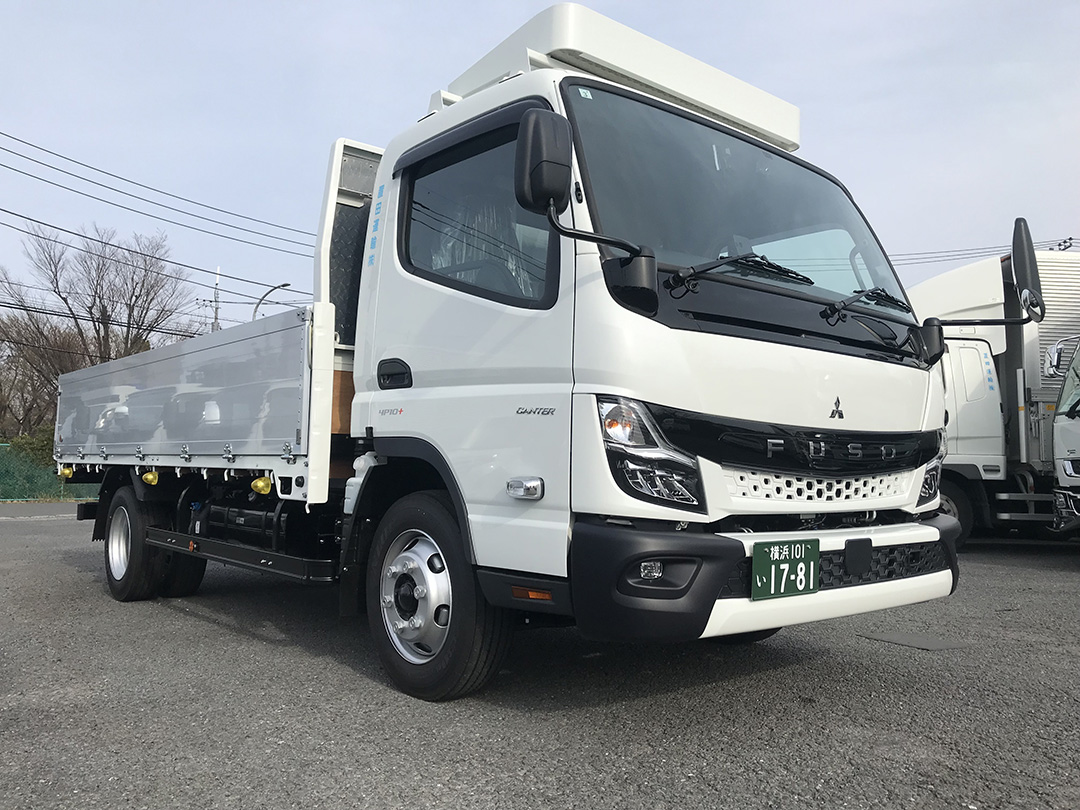 横浜営業所にて納車式を執り行いました。 三菱ふそうキャンター4t平ボディ4.8t積載車です。 ドライブレコーダー、デジタルタコグラフをはじめ 車線逸脱警報装置、衝突被害軽減ブレーキ、左巻き込み防止センサーなど 安全装置も、充実しております。