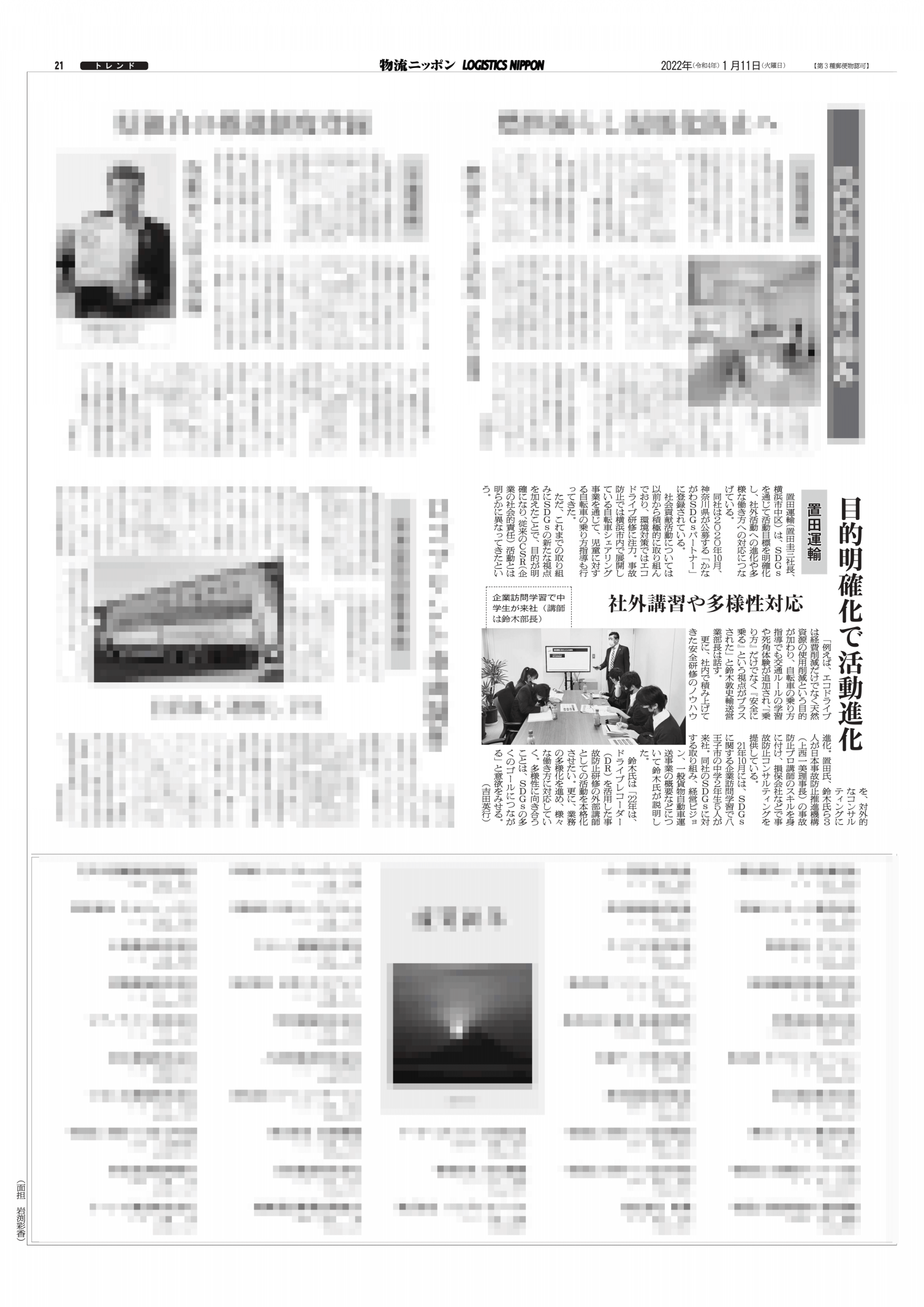 1月11日付けの物流ニッポンに弊社の取り組みが紹介されました。