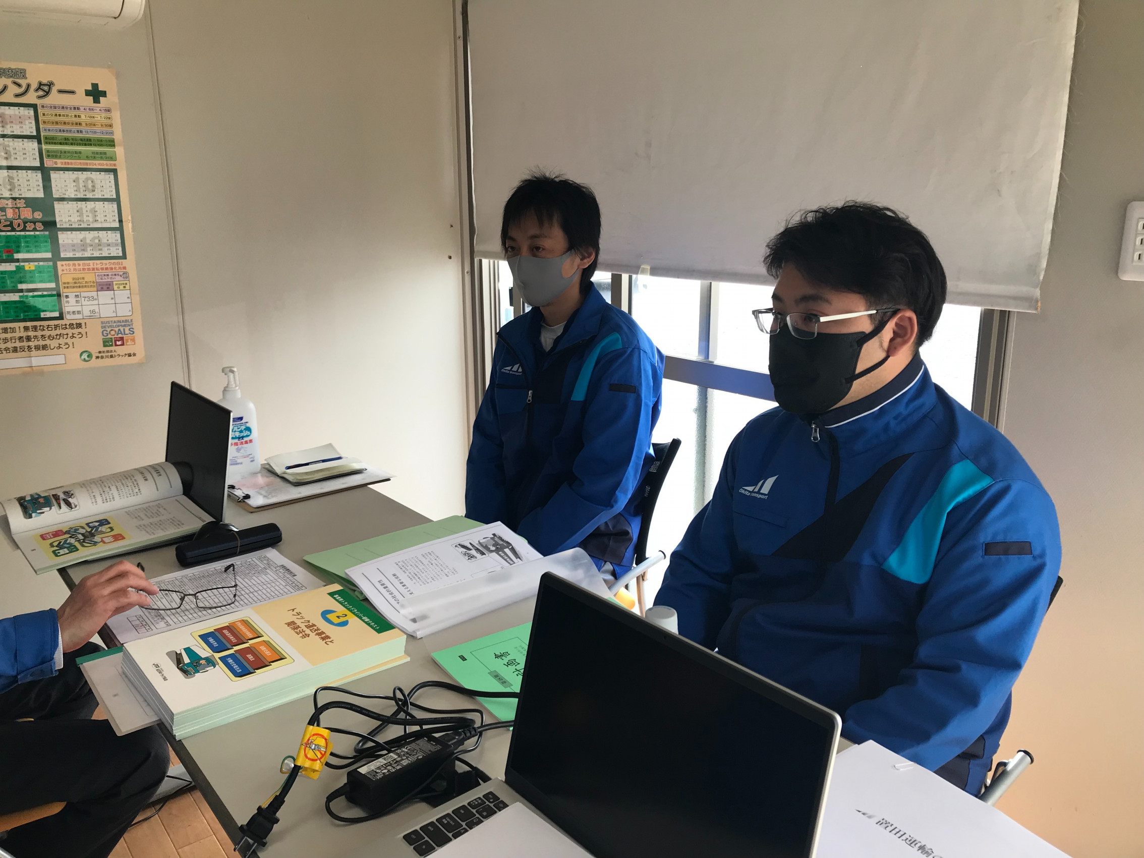 2名の新人さんにトラックドライバーとしての心構えや関係法令についての講義、