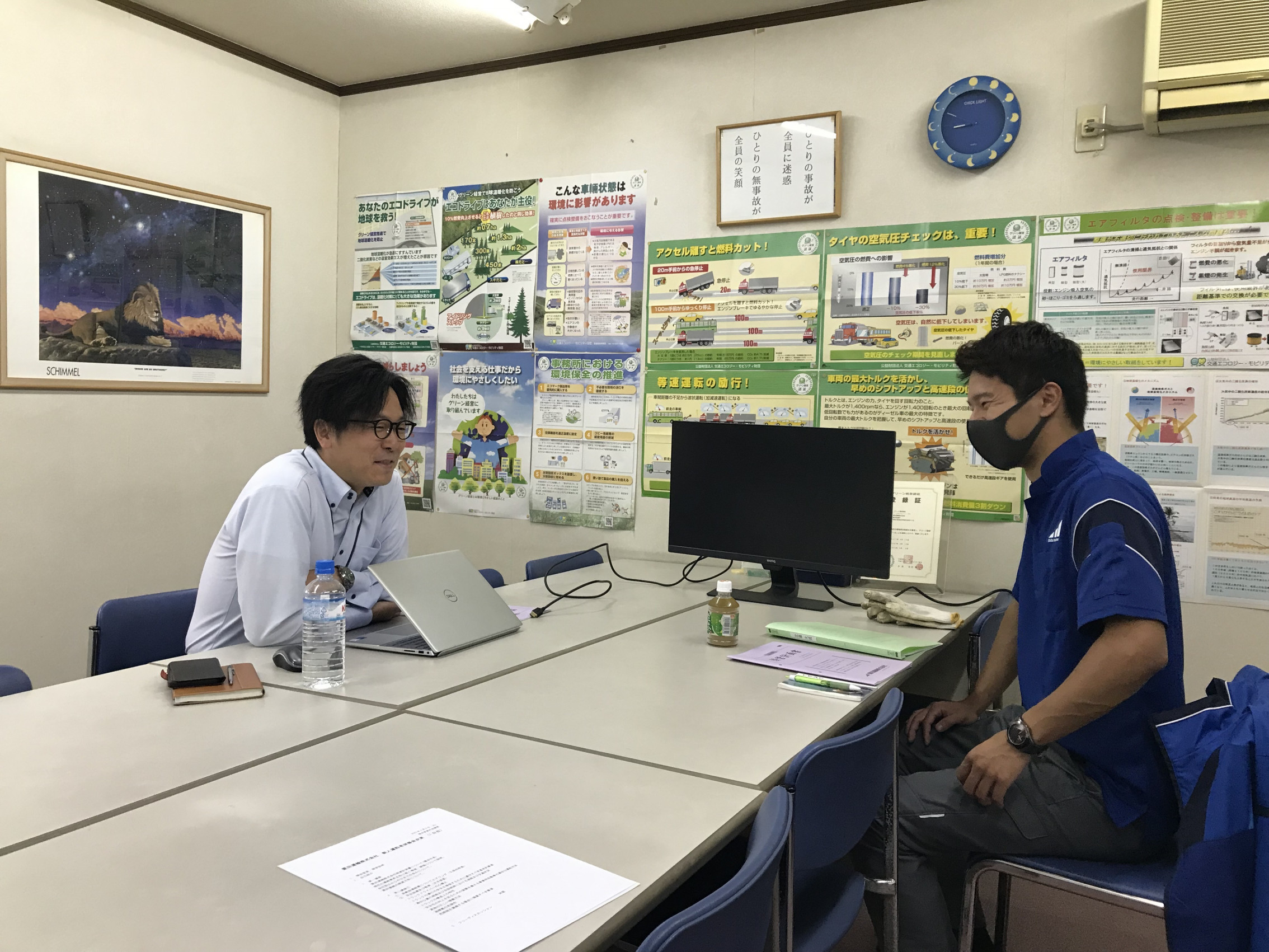久保田所長(横浜営業所長)との面談を行い、最後に実車を使用しての車両の点検整備研修を行いました。