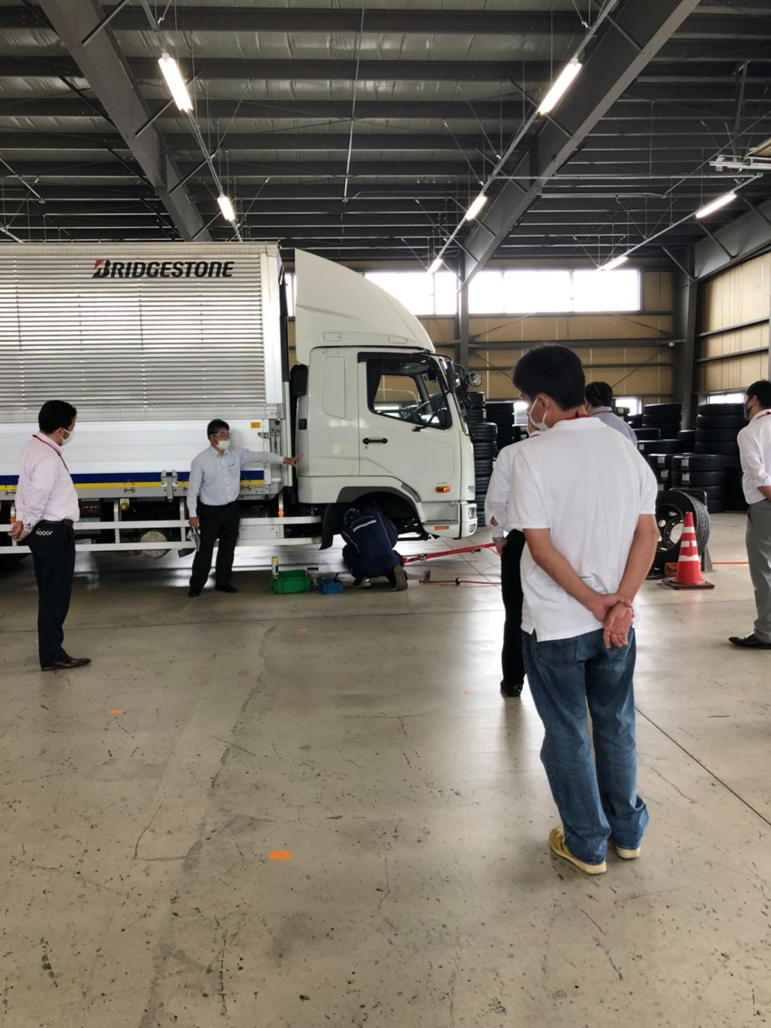 流石に工場内は写真撮影禁止だったのでタイヤ交換実技見学の様子です。