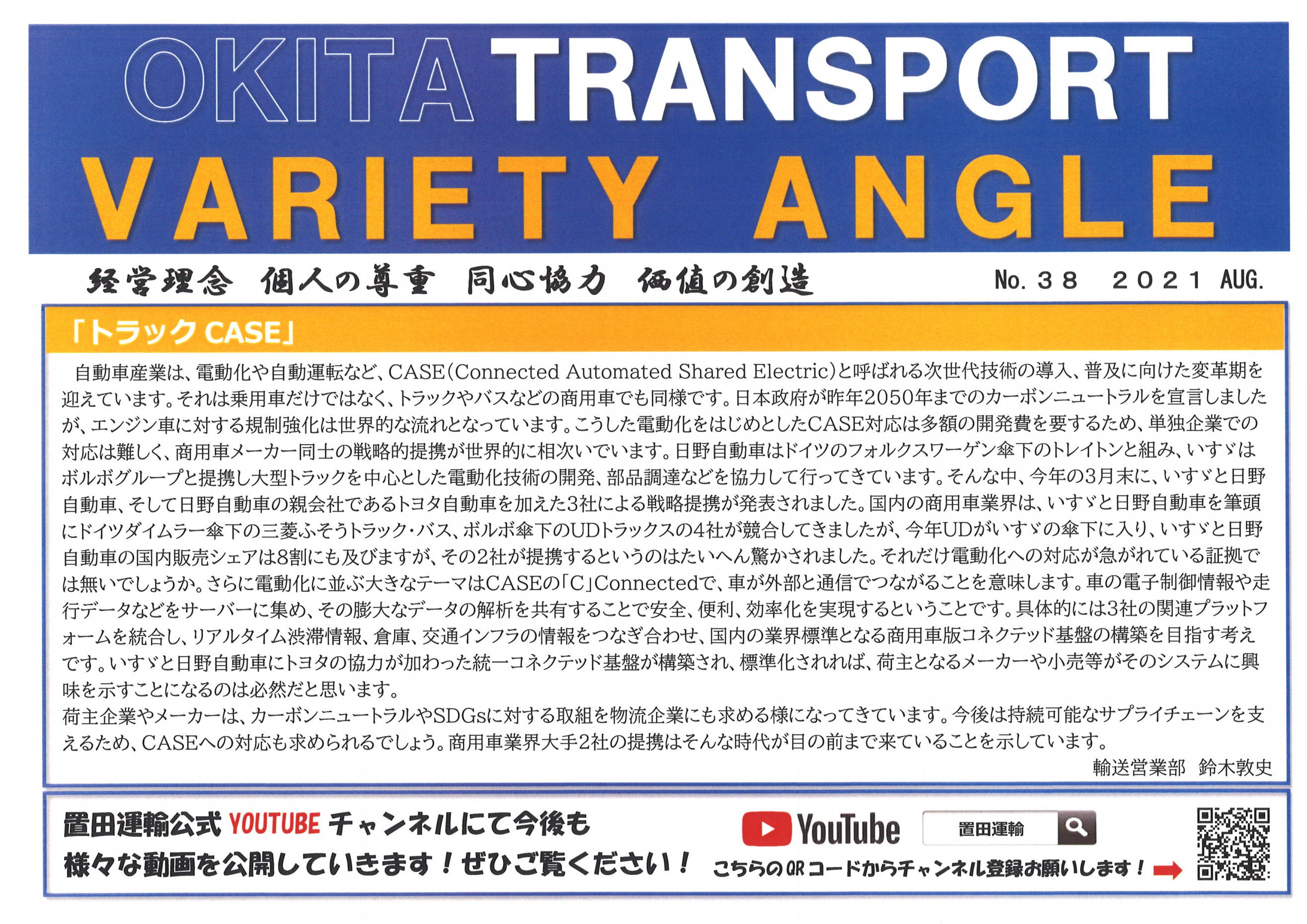 それでは置田運輸の広報誌「OKITAVARIETY ANGLE 8月号」です。