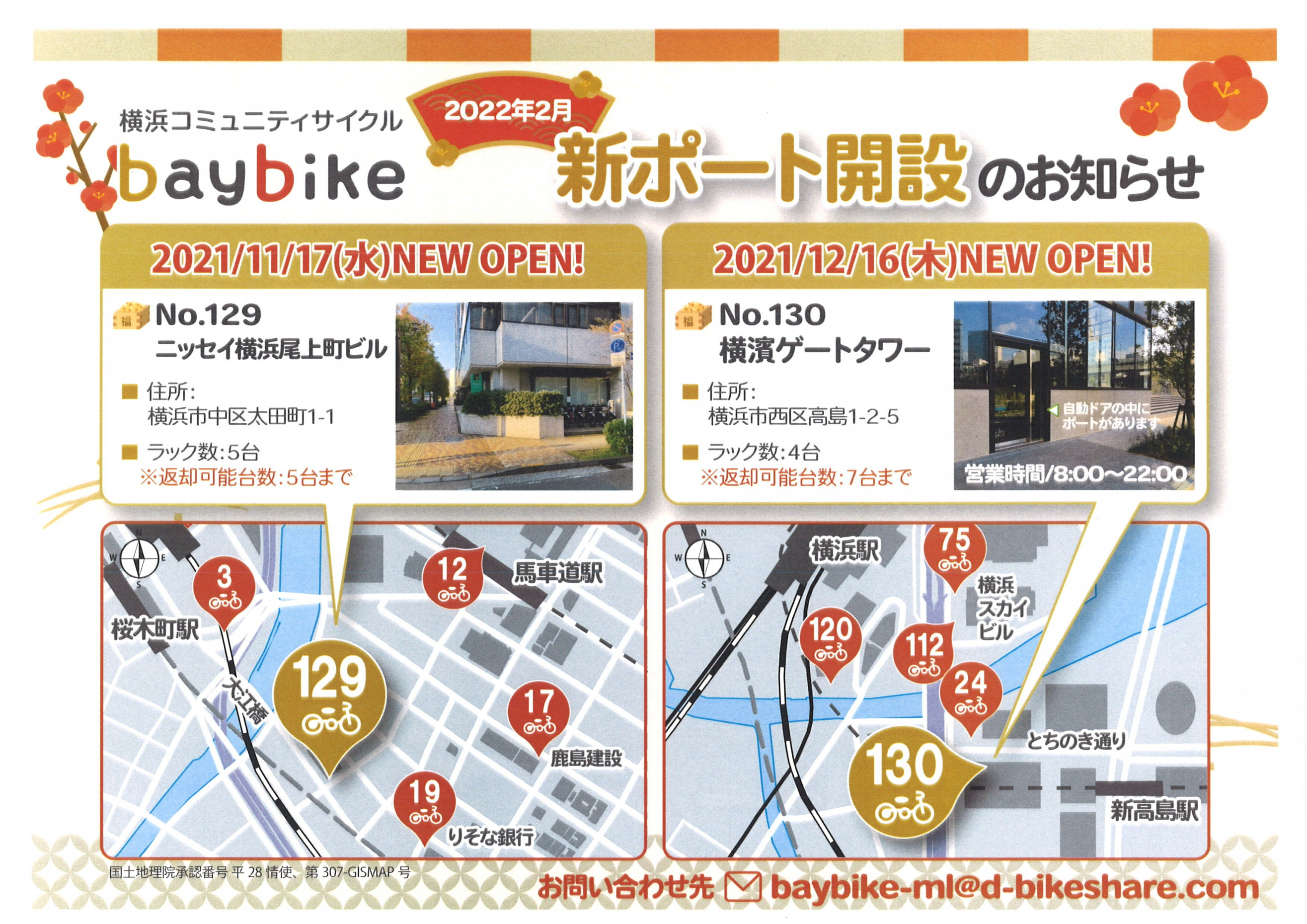 置田運輸が運営しているシェアサイクル事業「横浜コミュニティサイクルbaybike」の新ポート情報です。